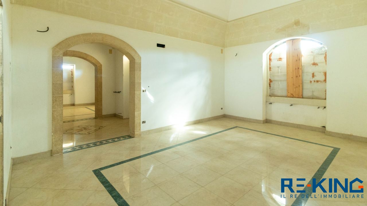 The property extends over two levels for a total area of approximately 286 mq. The raised ground floor of 141 mq, surrounded by spacious verandas featuring arches and vaulted ceilings, houses seven large rooms adorned with star-shaped and barrel vaults in Pietra Leccese. Elegant arches define the spaces, creating a harmonious balance of light, volume, and material. Every detail, from flooring to finishes, has been carefully designed to ensure refined elegance and contemporary comfort.