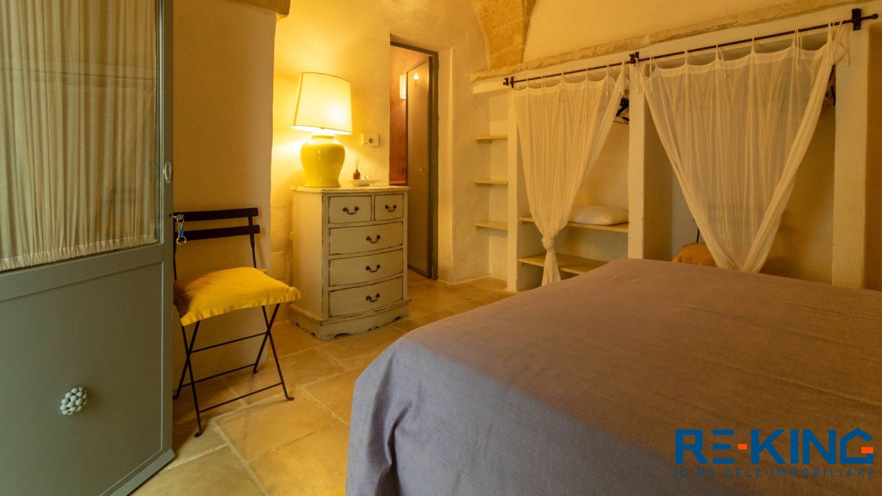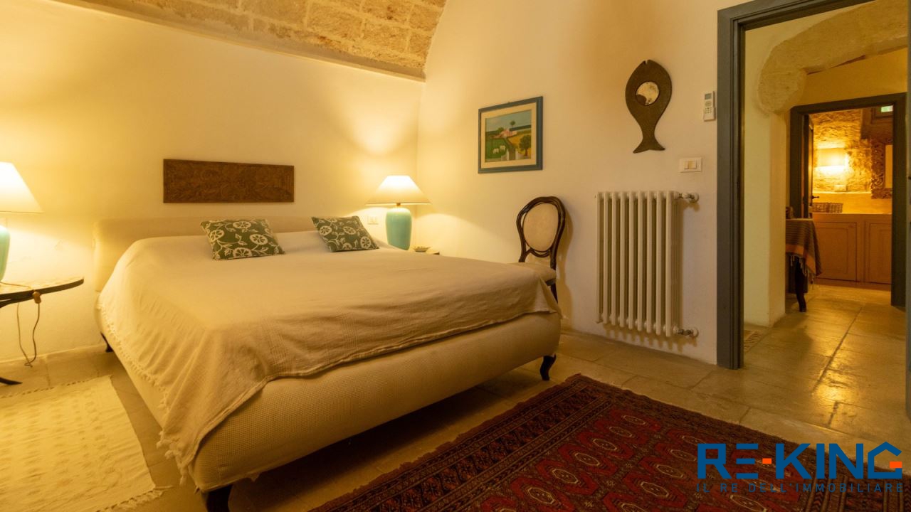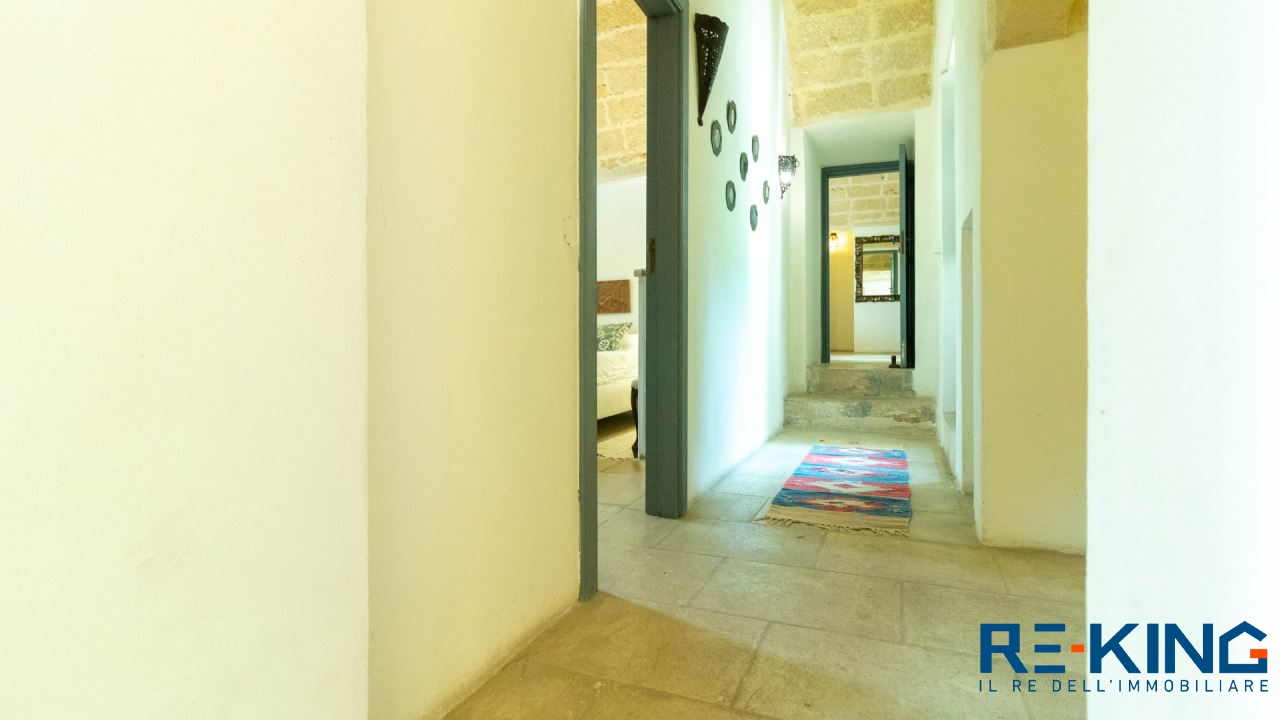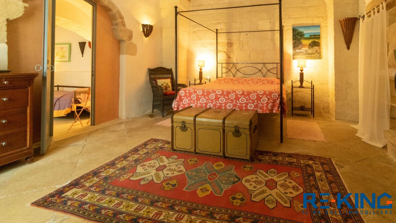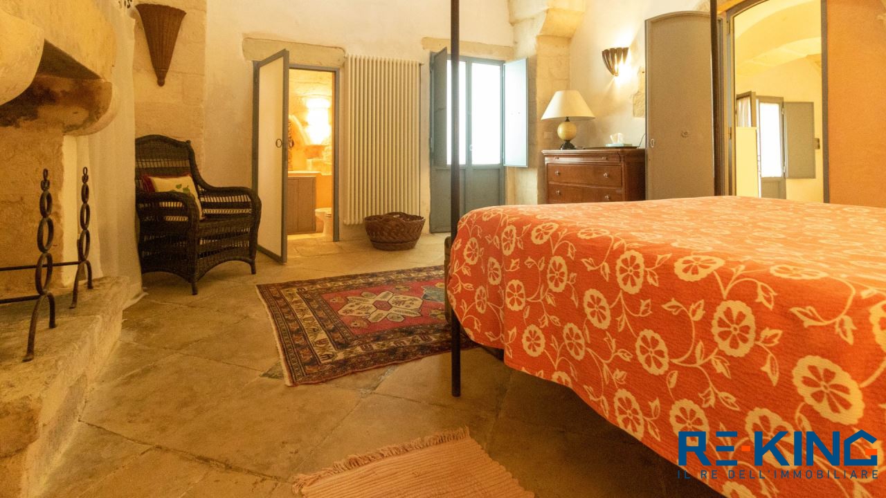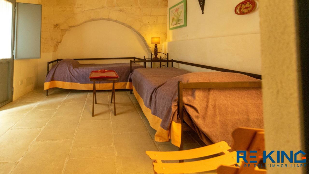 Al piano terra si trovano cinque camere matrimoniali con bagni en suite, ciascuna arredata con gusto e attenzione ai dettagli, tra cui una suite speciale composta da una camera principale e un salottino comunicante con due letti aggiuntivi, ideale per ospiti o famiglie numerose. Gli ambienti interni, luminosi e accoglienti, comprendono inoltre una cucina abitabile con angolo cottura in muratura tipico salentino, perfetta per preparare pasti in compagnia, e un soggiorno con zona living, accogliente e raffinato, ideale per momenti di relax o convivialità. Gli spazi si aprono su giardini e patii, creando un'atmosfera di intimità e tranquillità immersa nella natura.