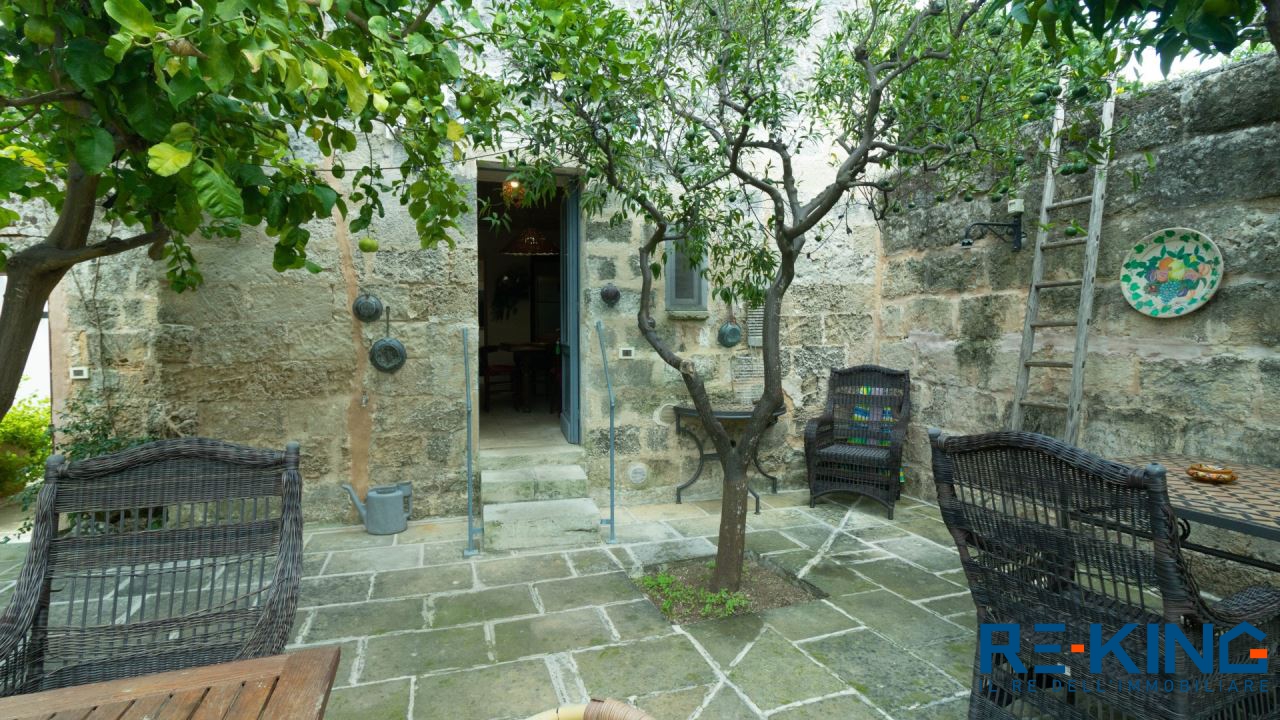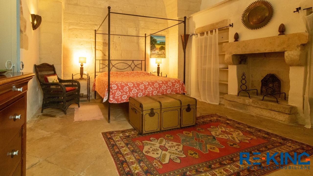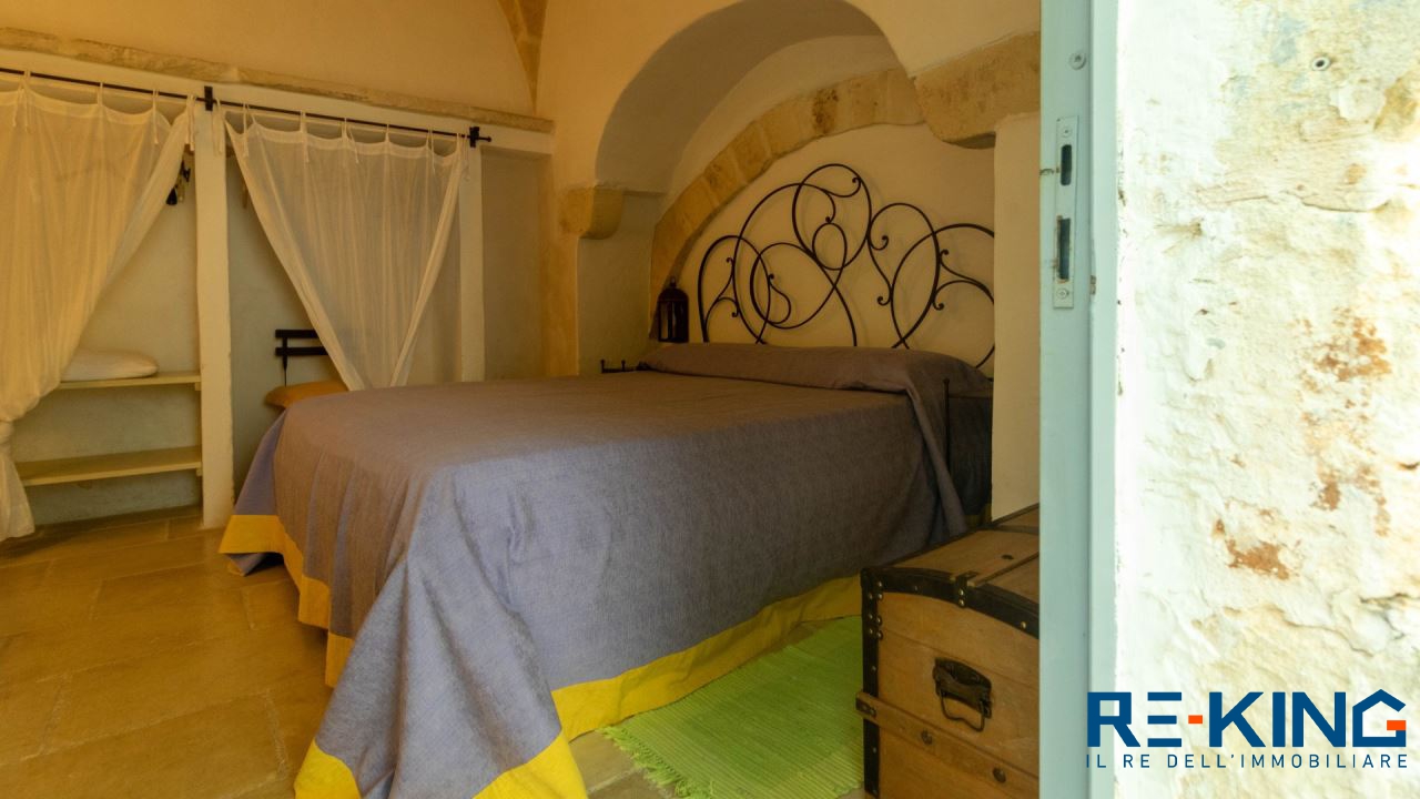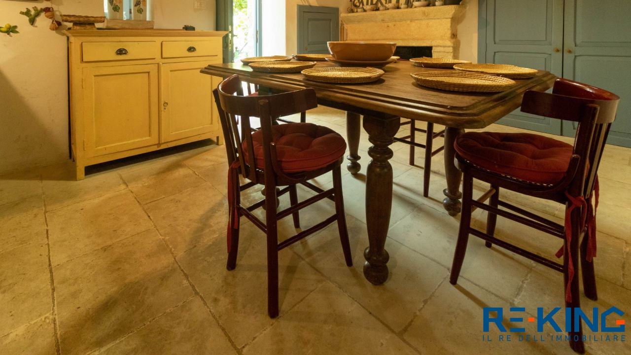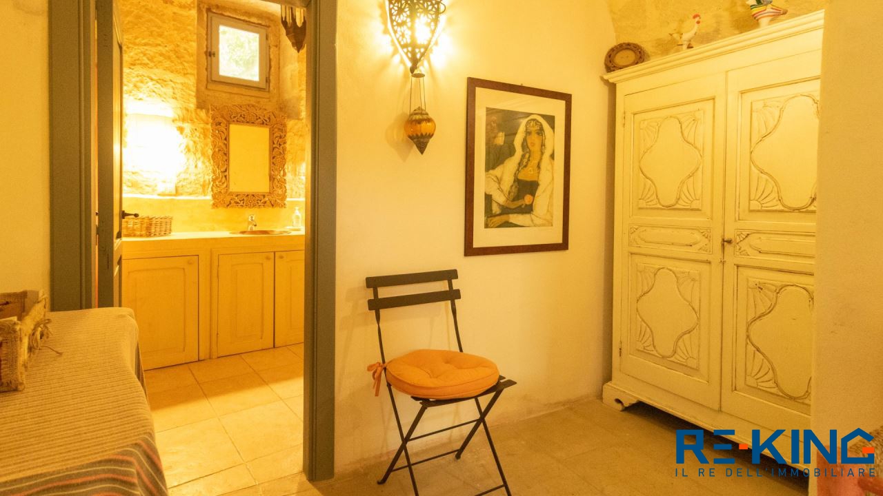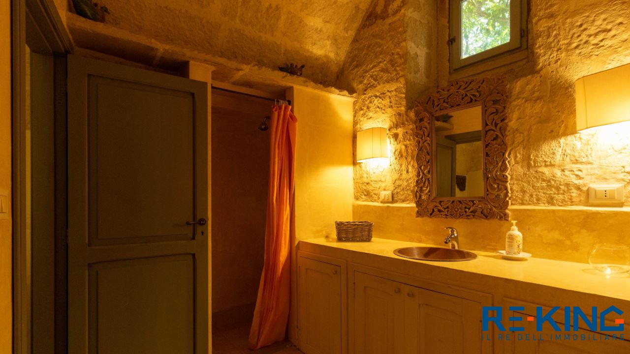 Al piano terra si trovano cinque camere matrimoniali con bagni en suite, ciascuna arredata con gusto e attenzione ai dettagli, tra cui una suite speciale composta da una camera principale e un salottino comunicante con due letti aggiuntivi, ideale per ospiti o famiglie numerose. Gli ambienti interni, luminosi e accoglienti, comprendono inoltre una cucina abitabile con angolo cottura in muratura tipico salentino, perfetta per preparare pasti in compagnia, e un soggiorno con zona living, accogliente e raffinato, ideale per momenti di relax o convivialità. Gli spazi si aprono su giardini e patii, creando un'atmosfera di intimità e tranquillità immersa nella natura.