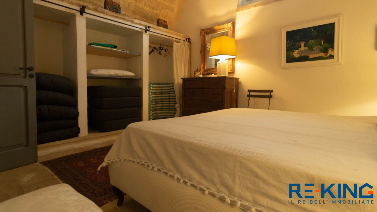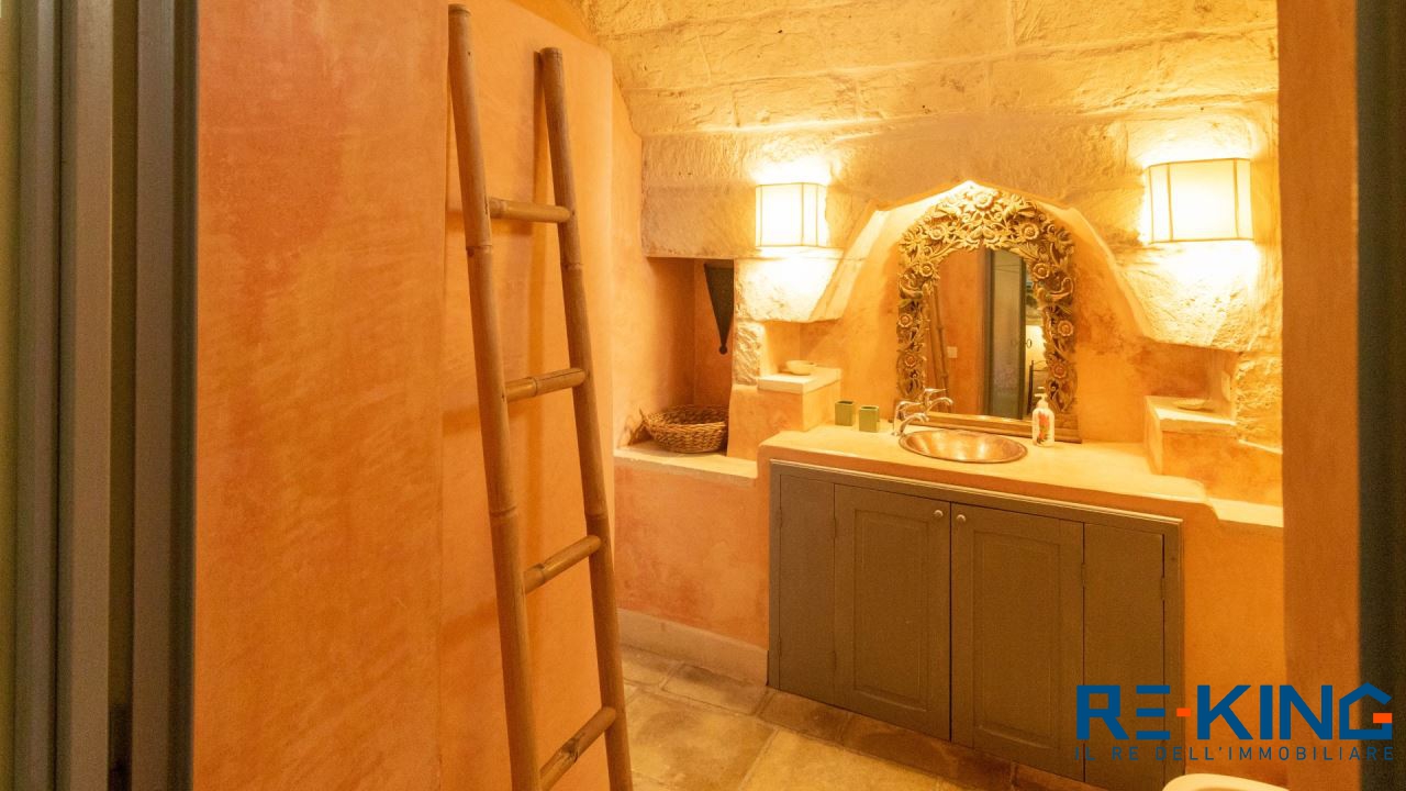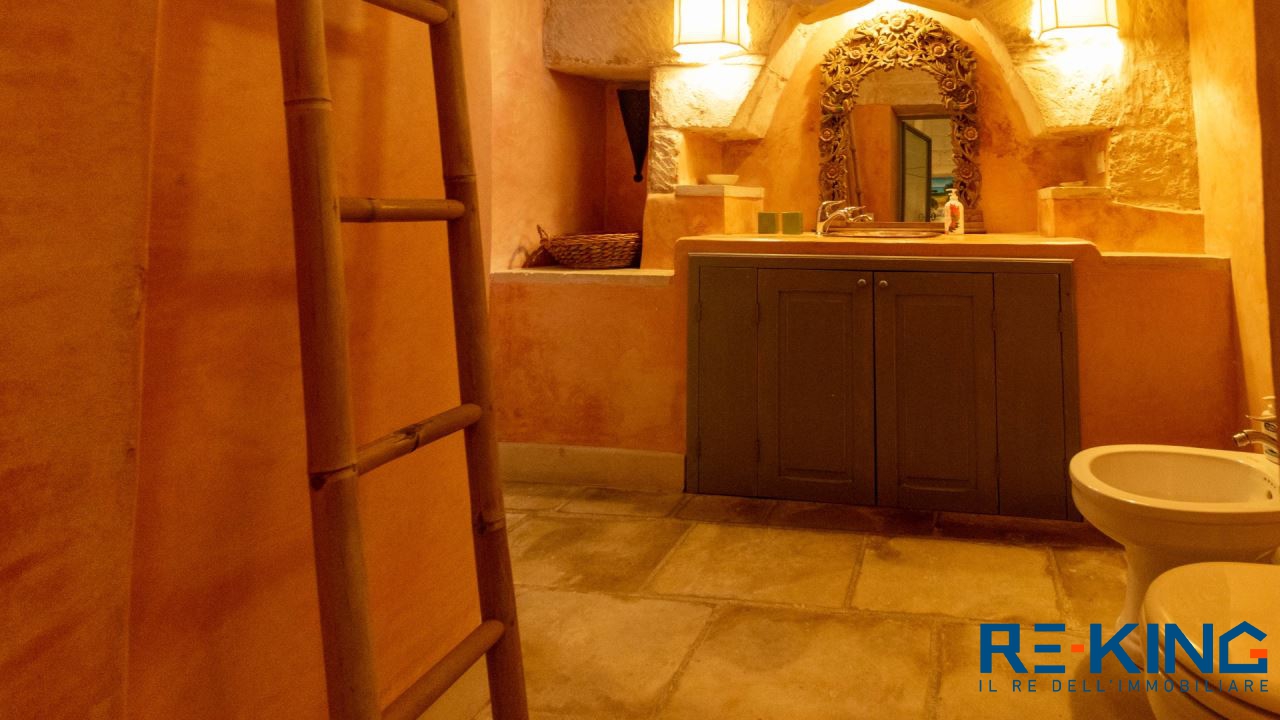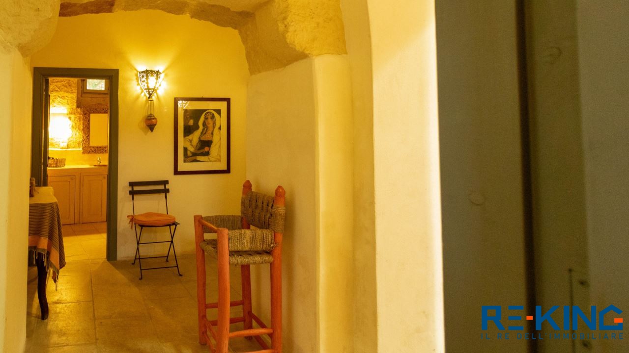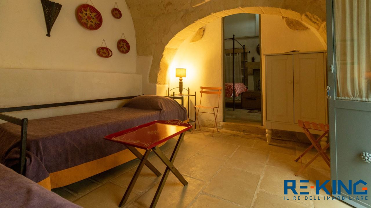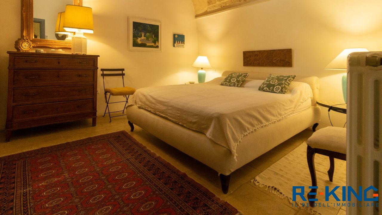 Al piano terra si trovano cinque camere matrimoniali con bagni en suite, ciascuna arredata con gusto e attenzione ai dettagli, tra cui una suite speciale composta da una camera principale e un salottino comunicante con due letti aggiuntivi, ideale per ospiti o famiglie numerose. Gli ambienti interni, luminosi e accoglienti, comprendono inoltre una cucina abitabile con angolo cottura in muratura tipico salentino, perfetta per preparare pasti in compagnia, e un soggiorno con zona living, accogliente e raffinato, ideale per momenti di relax o convivialità. Gli spazi si aprono su giardini e patii, creando un'atmosfera di intimità e tranquillità immersa nella natura.