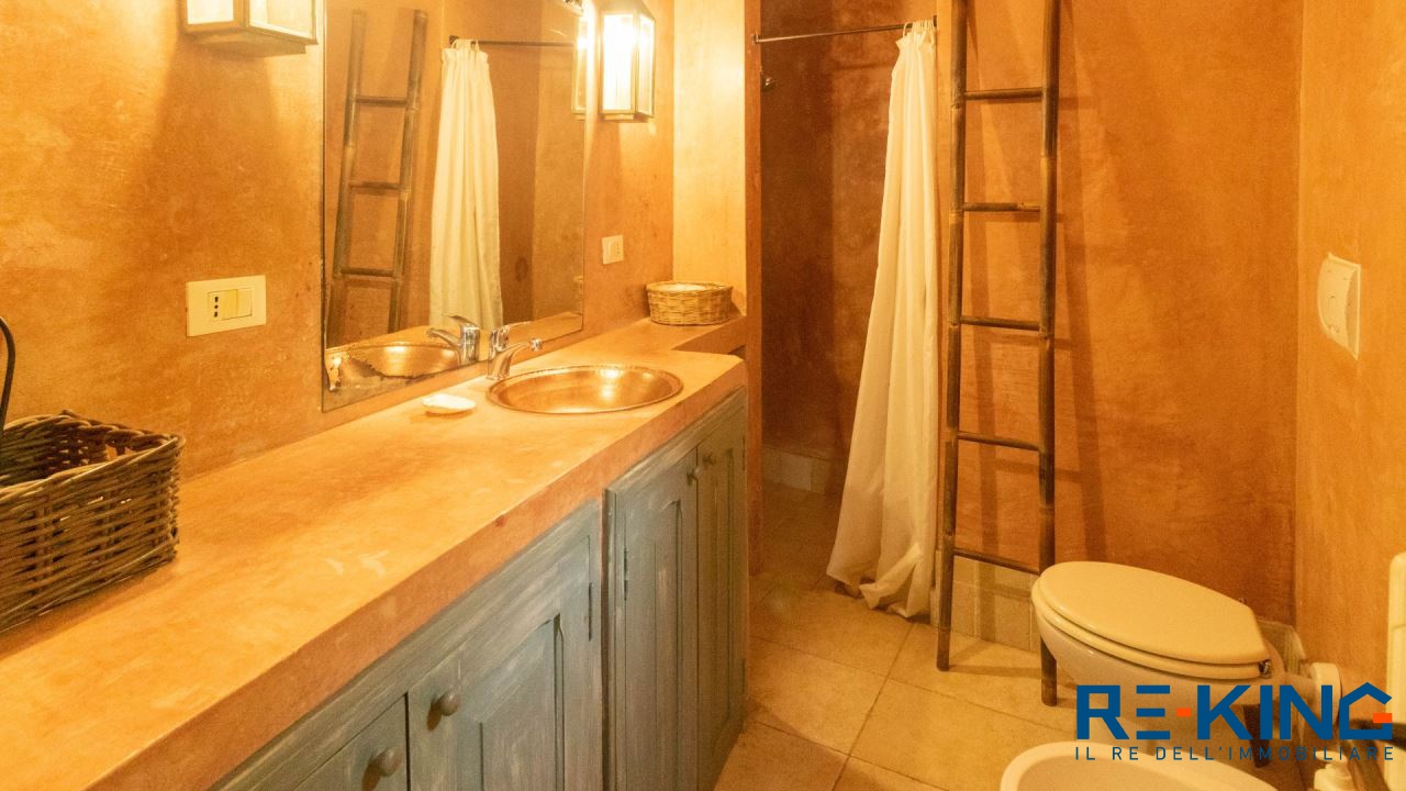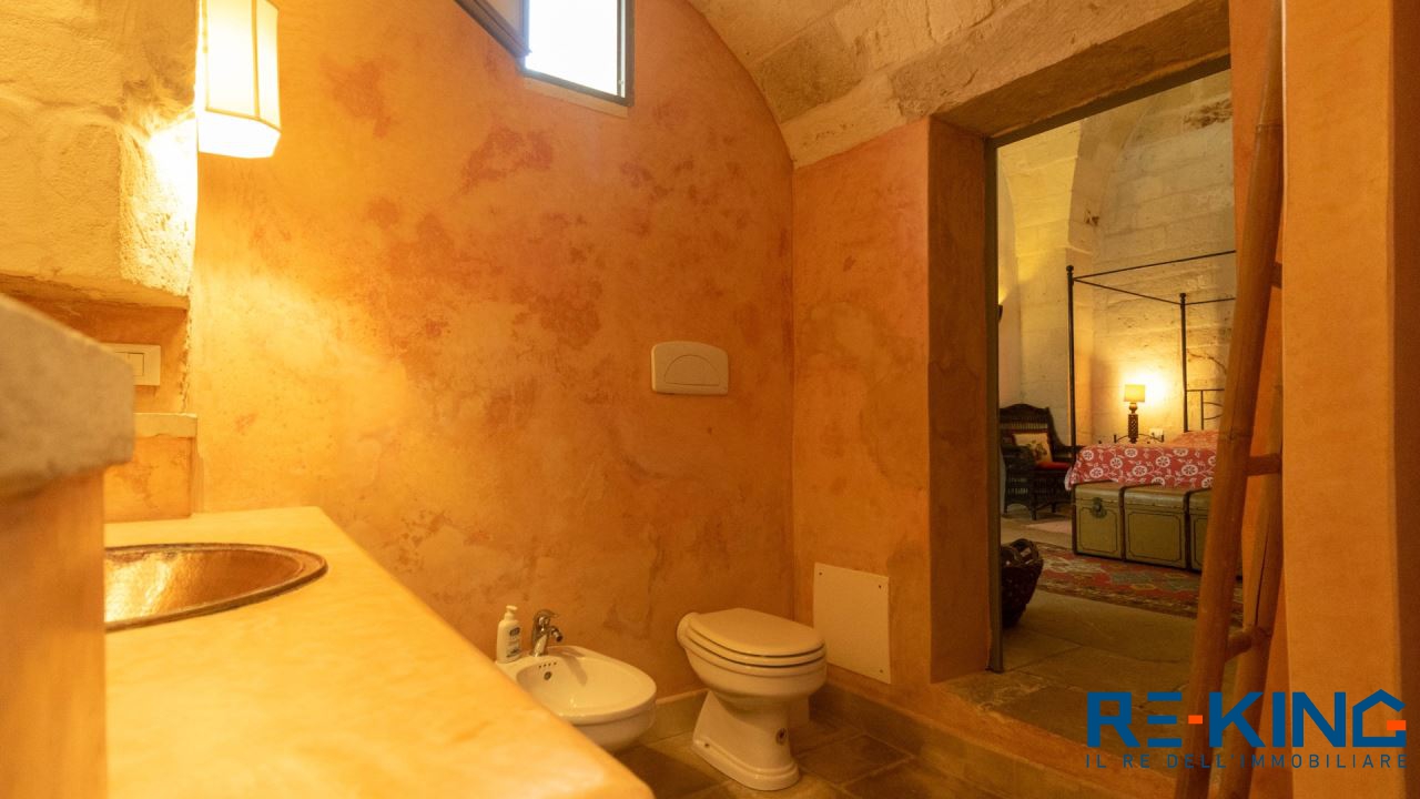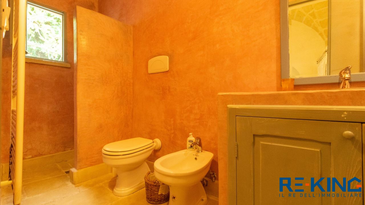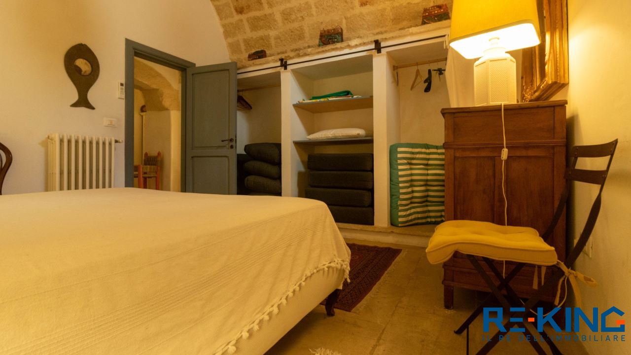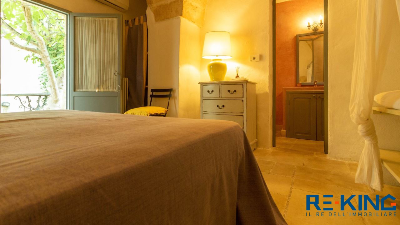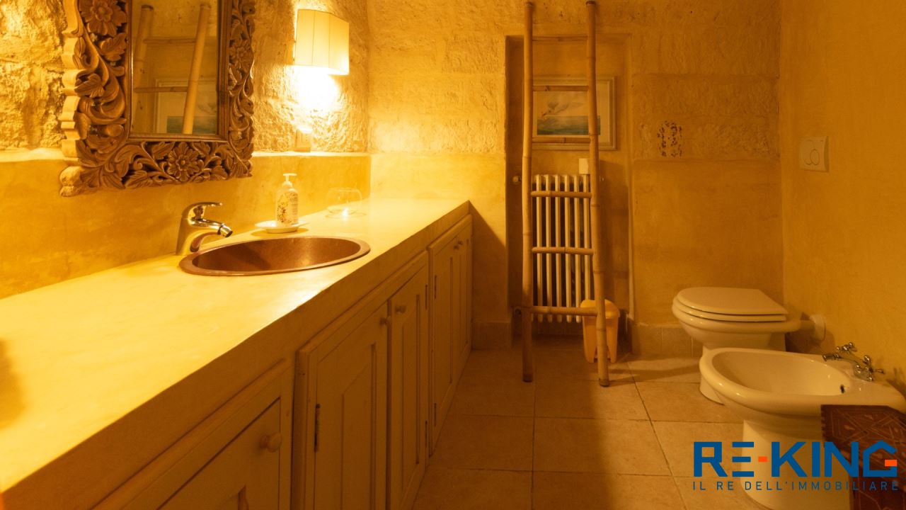 Al piano terra si trovano cinque camere matrimoniali con bagni en suite, ciascuna arredata con gusto e attenzione ai dettagli, tra cui una suite speciale composta da una camera principale e un salottino comunicante con due letti aggiuntivi, ideale per ospiti o famiglie numerose. Gli ambienti interni, luminosi e accoglienti, comprendono inoltre una cucina abitabile con angolo cottura in muratura tipico salentino, perfetta per preparare pasti in compagnia, e un soggiorno con zona living, accogliente e raffinato, ideale per momenti di relax o convivialità. Gli spazi si aprono su giardini e patii, creando un'atmosfera di intimità e tranquillità immersa nella natura.