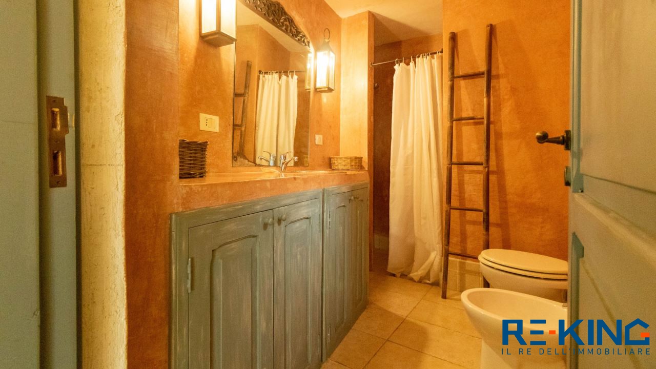 Al primo piano, un ampio terrazzo panoramico ospita la sesta camera da letto, perfetta per godere di vista sul borgo, sui giardini e sul paesaggio circostante, ideale per momenti di relax e contemplazione dei tramonti mediterranei.
